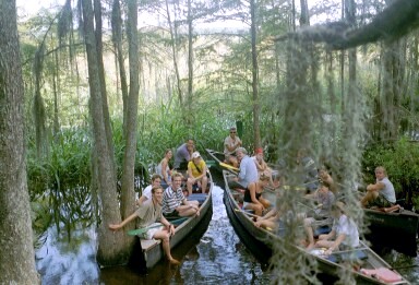 "on our way out" een moeras bezocht. We zaten in 8 persoons bootjes / kano's die we zelf moesten voortpeddelen.