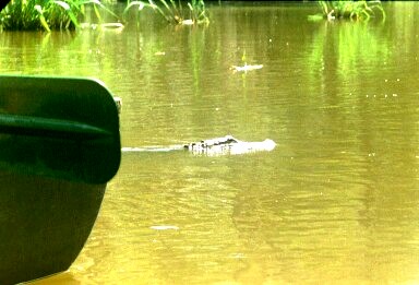 Op die manier zouden we geen dieren wegjagen. Je moest erg uitkijken om niet met je peddel op de rand van de boot te slaan. Wat een mooi natuurgebied zeg! Het was net als een bos, maar dan waar alles onder water stond. In totaal hebben we zo'n 13 alligators gezien. Eentje stond boven op een steen te "ventileren". Blijkbaar kwam dat niet zo vaak voor, want de gids baalde al dat hij zijn camera niet bij zich had en vroeg ons om goed gelukte foto's naar hem te sturen. Daarnaast hebben we ook nog wat aparte vogels en een paar schildpadden gezien.